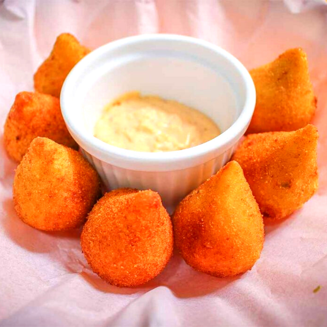Mini coxinhas brasileñas · 7, 25, 50 o 100 unidades Pollo o pollo con queso · Delivery y salón