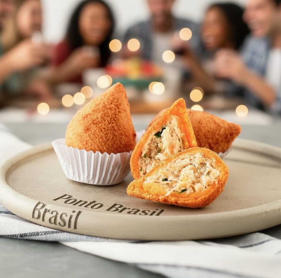 La coxinha es uno de los salgados brasileños mÔs emblemÔticos. Su forma inspirada en un muslito de pollo y su textura crocante la han convertido en un clÔsico muy querido en Brasil. En Ponto Brasil la preparamos en versión mini, ideal para quienes buscan bocaditos brasileños en Lima.